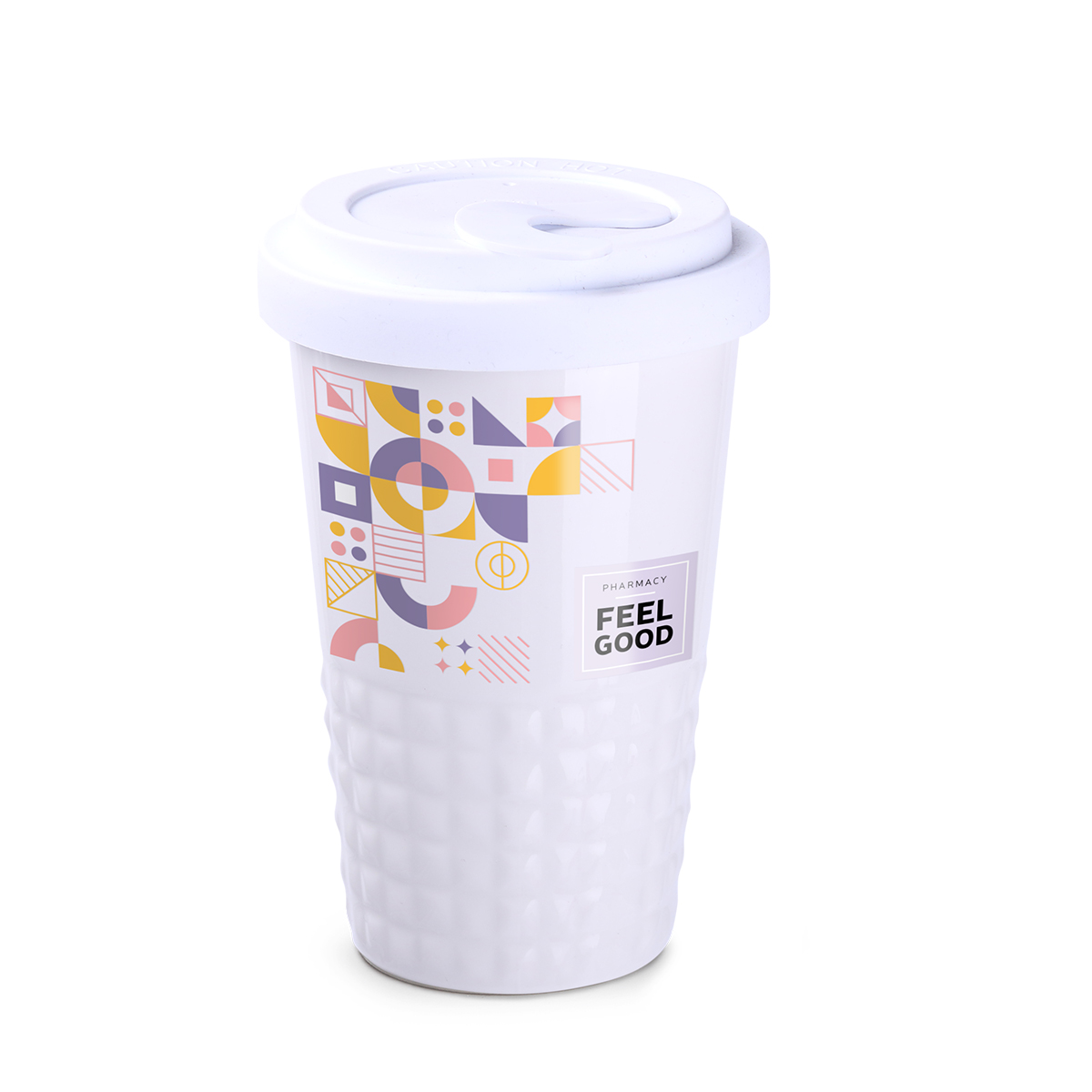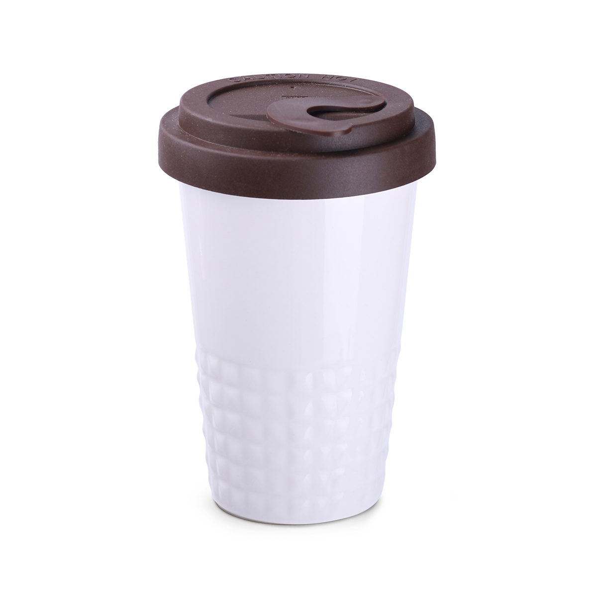 Nowość na rynku ceramiki reklamowej. Subtelne wykończenie dolnej części kubka w formie symetrycznych wypustek. Porcelanowy kubek dwuścienny, zapewniający doskonałą izolację ciepła. Wyjątkowo szczelna przykrywka. Model dla aktywnych.